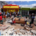 People walk along muddied roads scavenging the wreckage for food. Others jump into damaged stores in the hope of finding…